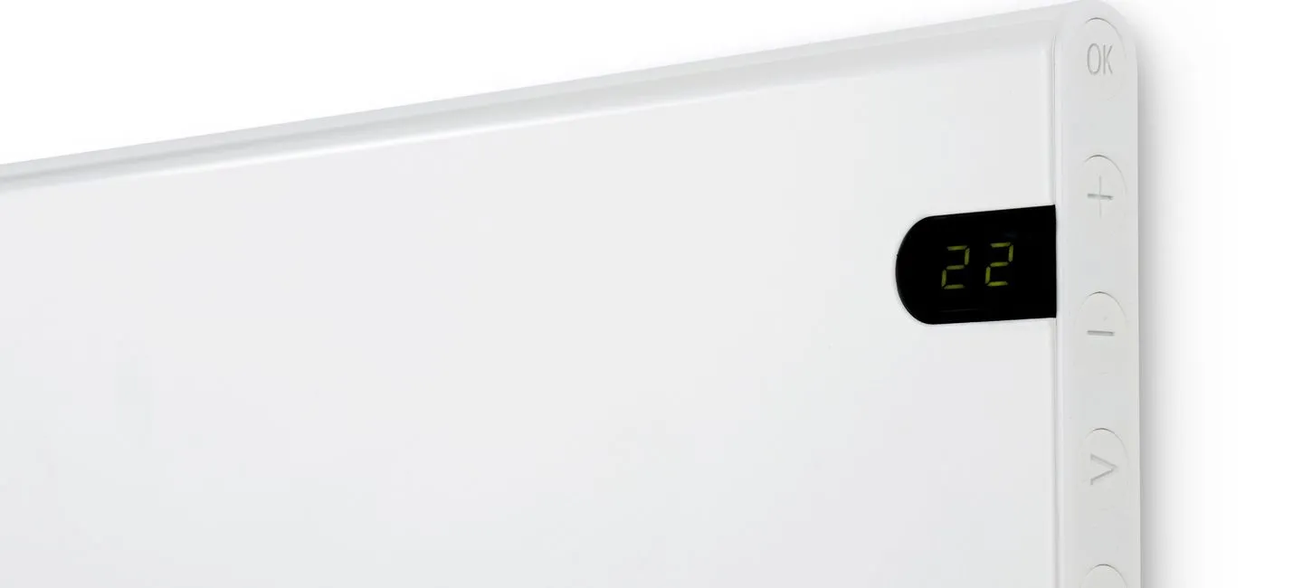 - Дигитален термостат с програмиране – Adax NEO NP 20 KDT е оборудван с дигитален термостат с температурен сензор и дисплей, който показва температурата в Целзий. Моделът предлага седмично програмиране, което ви позволява да настроите температурата по дни и часове, спестявайки до 25% от разходите за отопление.
